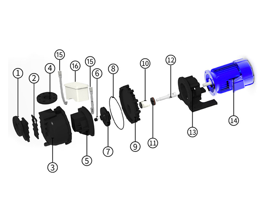 泵体材质:CFRPP、GFRPP、PVDF